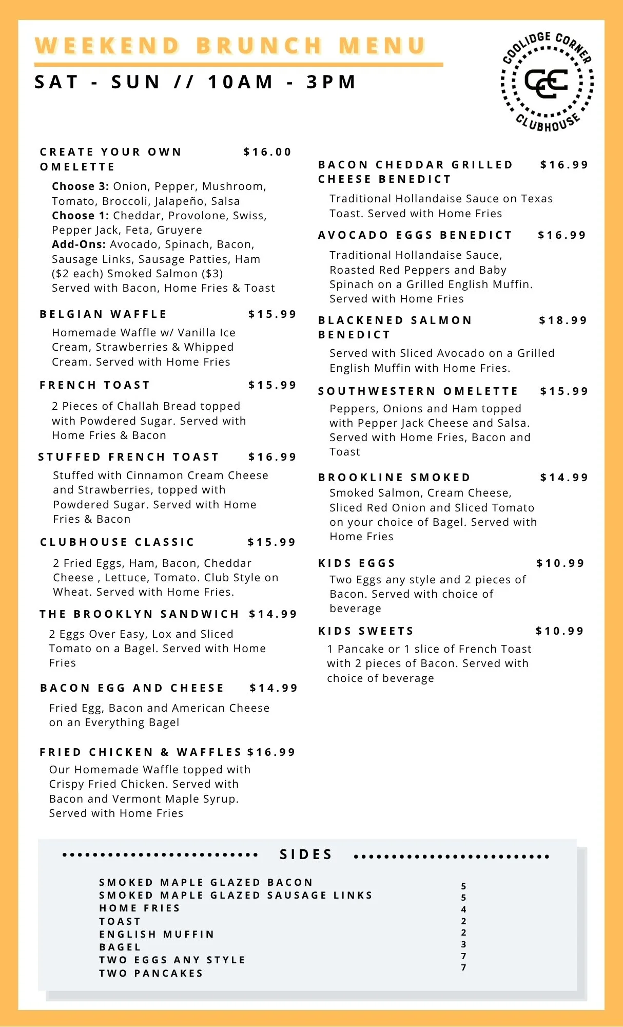 WE SERVE OUR DAILY BREAKFAST MENU EVERYDAY UNTIL 3 PM AND ADDITIONALLY OUR FULL BRUNCH MENU ON SATURDAYS AND SUNDAYS